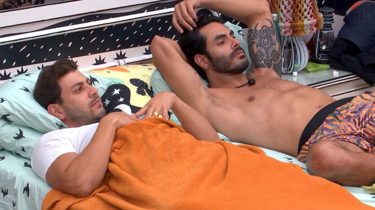 Alguns brothers conversam no Quarto Cordel e Gilberto faz uma análise: "Mas é verdade, porque uma segunda pessoa do grupo de lá saindo, ai vai cair ficha real", avalia. Caio, que participa do assunto, opina: "Vou falar uma suposição. Se Nego Di caiu por causa do jogo, é só Projota ir, que ele sai", diz.