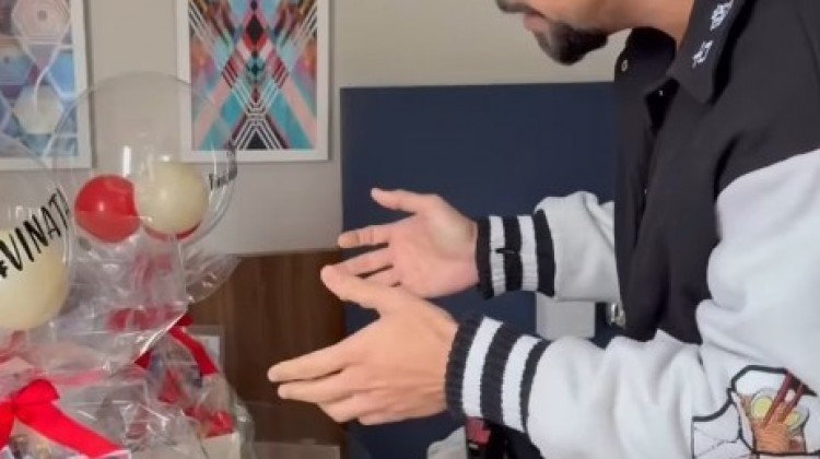 "Chegou aqui duas cestas lindas. Bem que Rê falou que tem muita gente... A galera do #Vinata. Que coisa linda, mas não gastem o dinheirinho de vocês", agradeceu Vinícius.